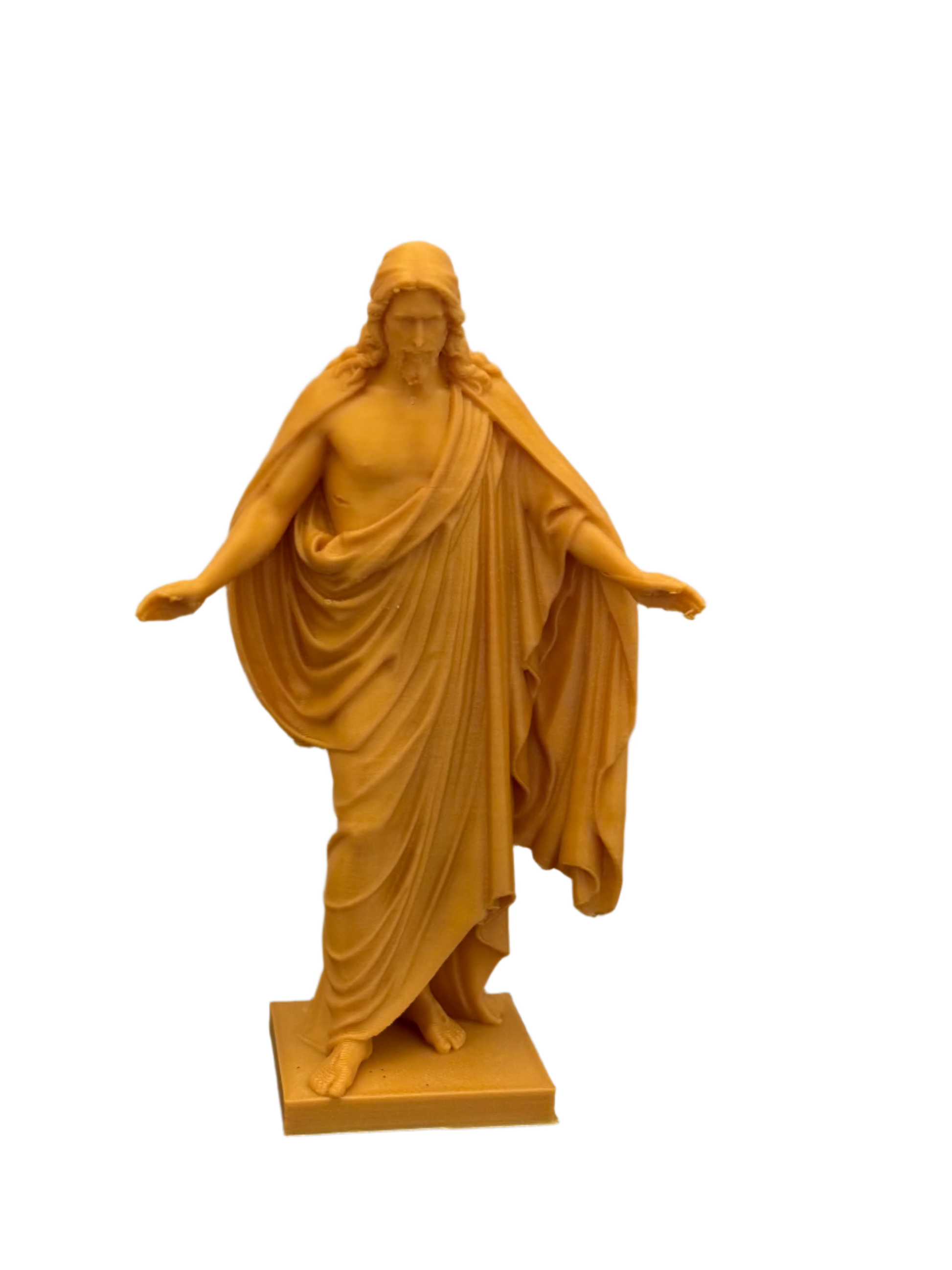 Our 3D-printed Jesus figure is a beautifully crafted piece, designed with attention to detail and reverence. This product is heat resistant made with ASA material This figure captures the serenity and compassion of Jesus, making it a meaningful addition to your home or place of worship. Printed with high-quality materials, it is durable and lightweight, suitable for display on a mantle, shelf, or altar. Available in multiple sizes and finishes, this unique piece can be customized to match your personal style or spiritual decor. Perfect for gifting, or as a personal reminder of faith and peace.